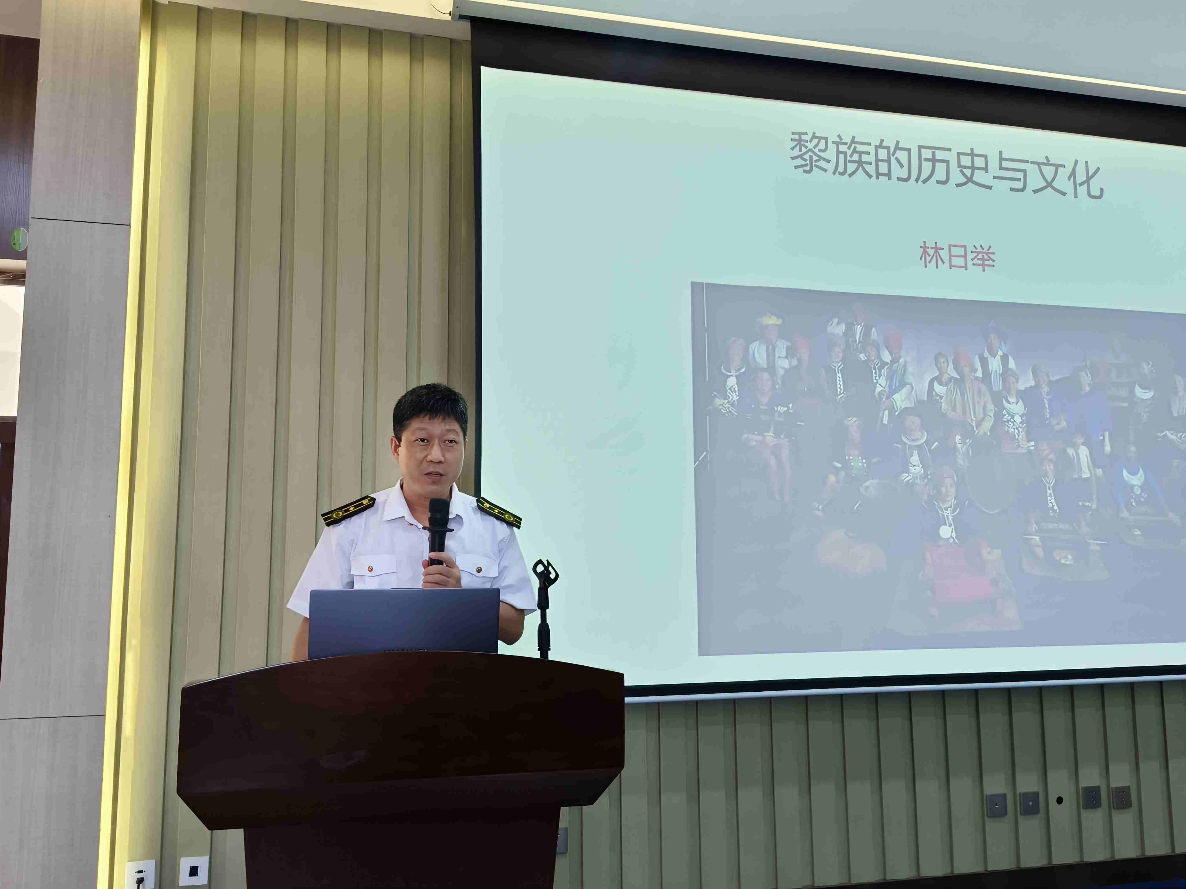 为深化师生对铸牢中华民族共同体意识的理解,2025年11月25日,beats365唯一官方网站关工委特邀林日举教授,在人文楼103教室举办了一场关于《黎族的历史与文化》的专题讲座。本次讲座由国际航海公司党总支副书记刘世杰主持,2023级船舶电子电气工程专业全体员工参加讲座。