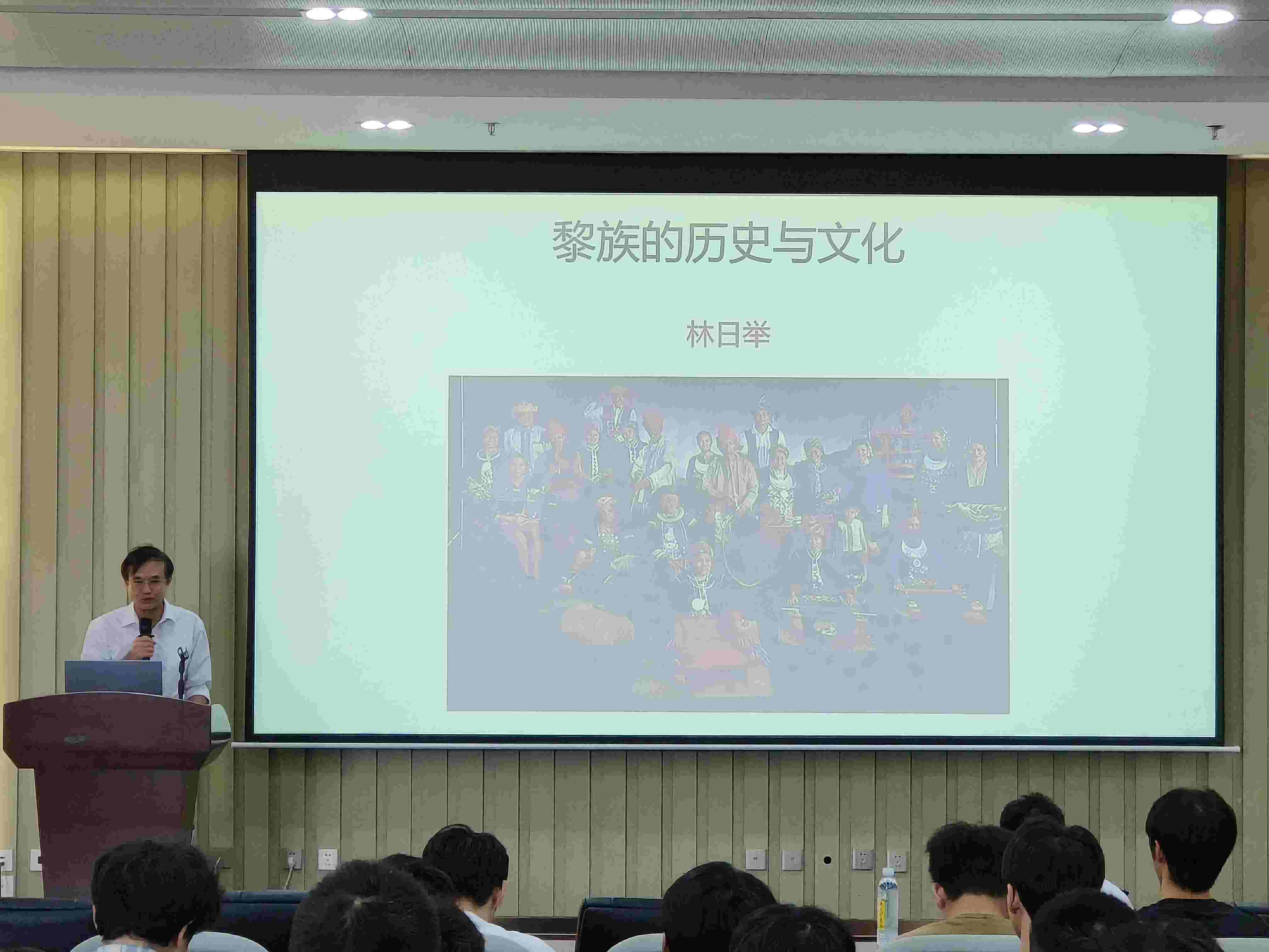 讲座中,林日举教授以其深厚的学术积淀和生动的语言,系统梳理了黎族悠久的历史脉络,深入阐释了黎族在海南的发展及其独特的文化习俗、社会结构与传统信仰。他通过丰富的历史细节与鲜活的案例,展现了黎族文化作为中华文化不可分割的瑰丽篇章,强调了各民族在历史长河中相互交融、共同发展的紧密联系。